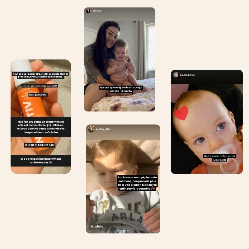 De cette question est née nubitiv, avec une mission claire : accompagner les bébés et leurs parents à travers les inconforts liés à la poussée dentaire : douleurs, nuits agitées, crises de larme et redonner sérénité aux parents.