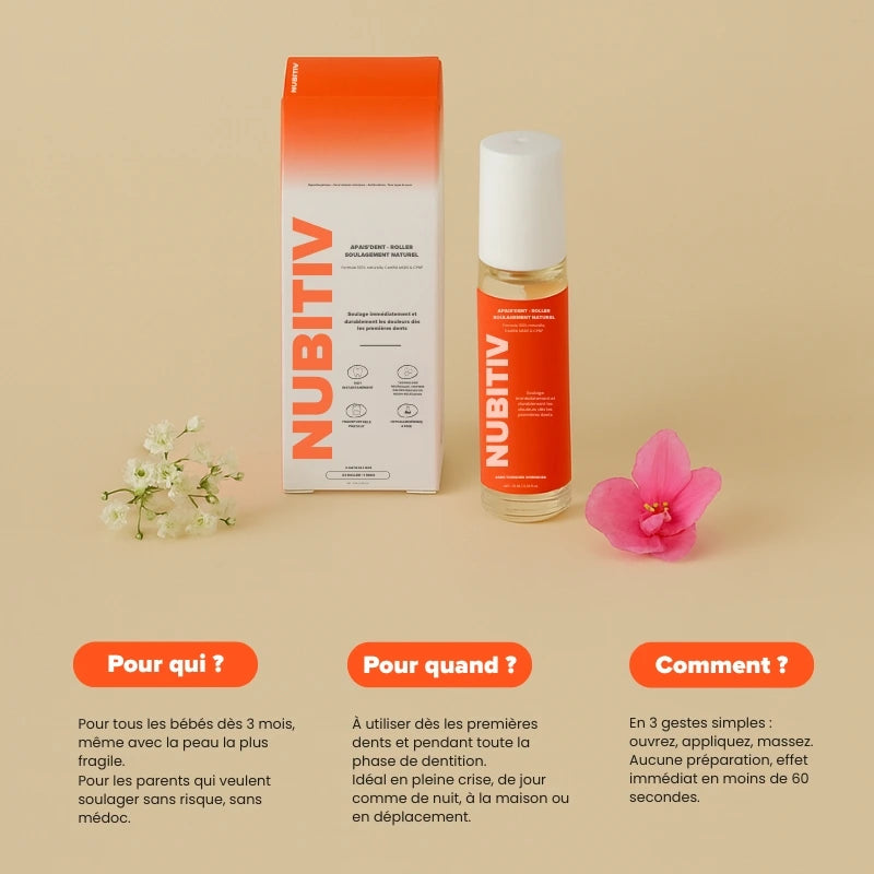 Ce que j’aime avec ce roller, c’est sa simplicité et son efficacité immédiate. Il calme les pleurs sans devoir passer par le Doliprane à chaque fois. C’est naturel, sans danger, et facile à utiliser même au milieu de la nuit. Je le recommande les yeux fermés dès les premières poussées.